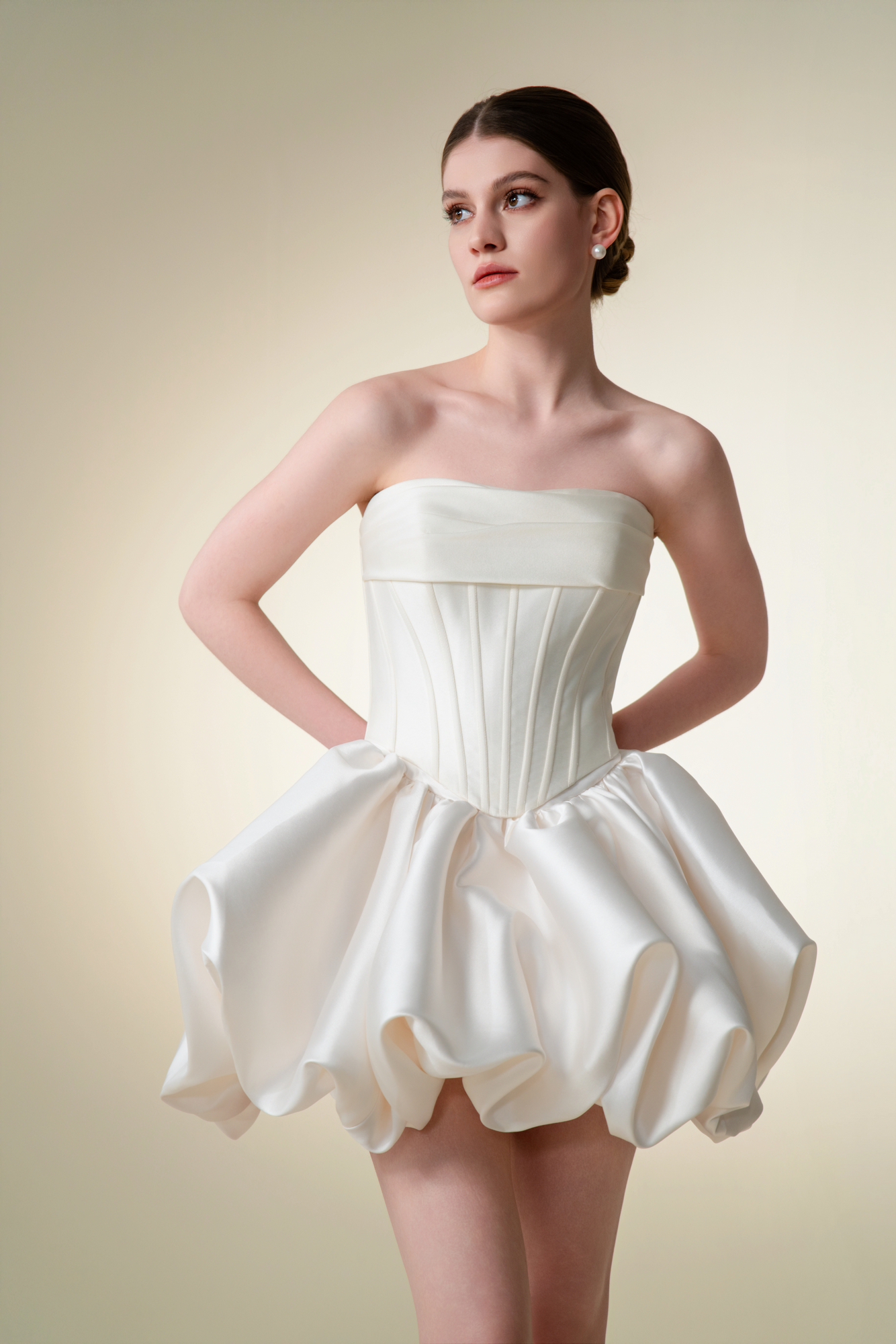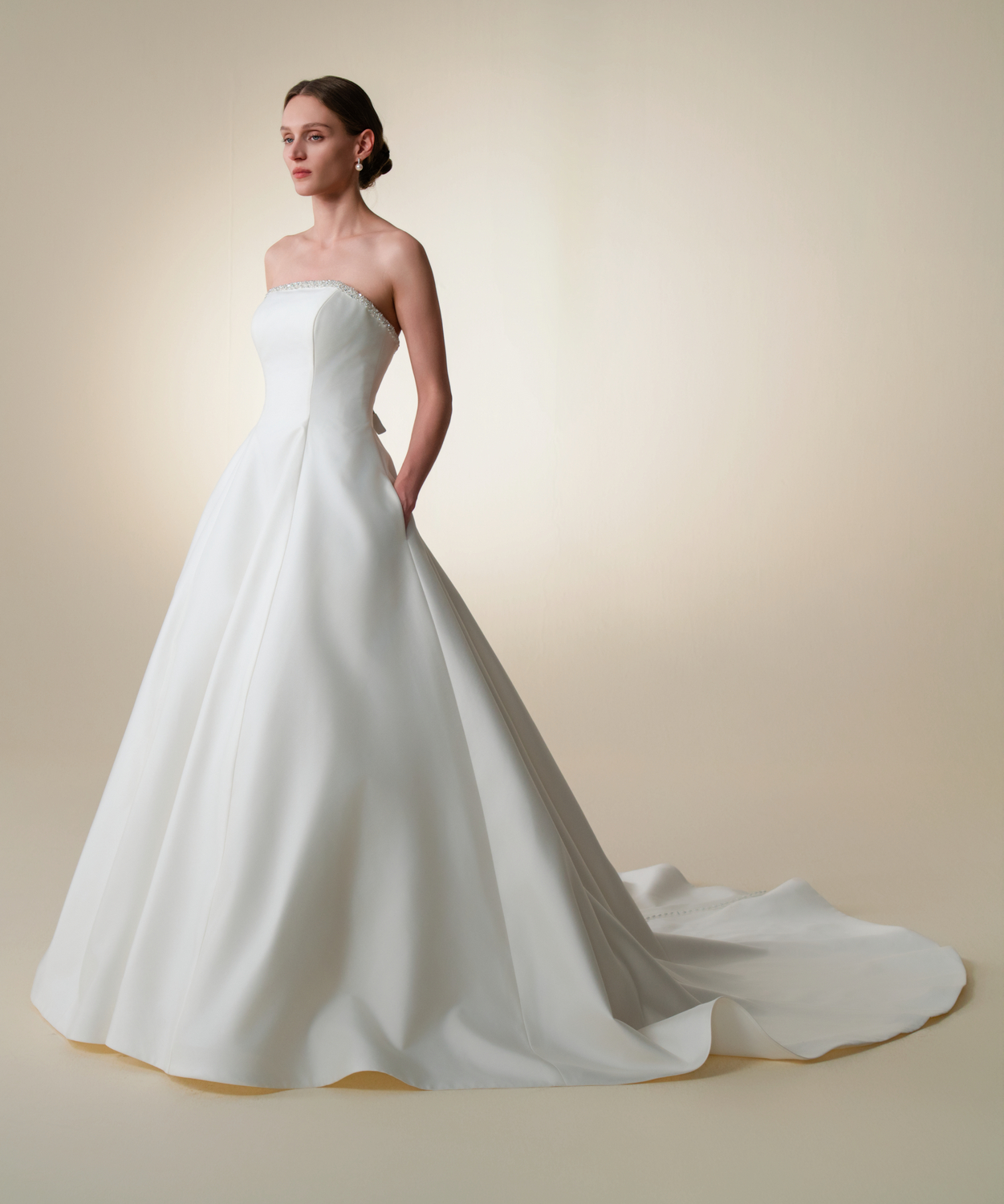 Introducing the Teresa Atelier White Privée collection, where luxury meets simplicity. This series is distinguished by its use of high-end fabrics such as satin, silk, jacquard, and fine silk, emphasizing minimalist elegance. Each gown in this collection is crafted with the finest materials, combined with perfect tailoring and expert craftsmanship, resulting in wedding dresses that exude quality and sophistication. The White Privée collection embodies a refined aesthetic, offering brides beautifully constructed gowns with a timeless, understated allure.
